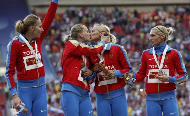 Russian athletes protesting ‘anti-gay propaganda laws’ – photo credit to Reuters